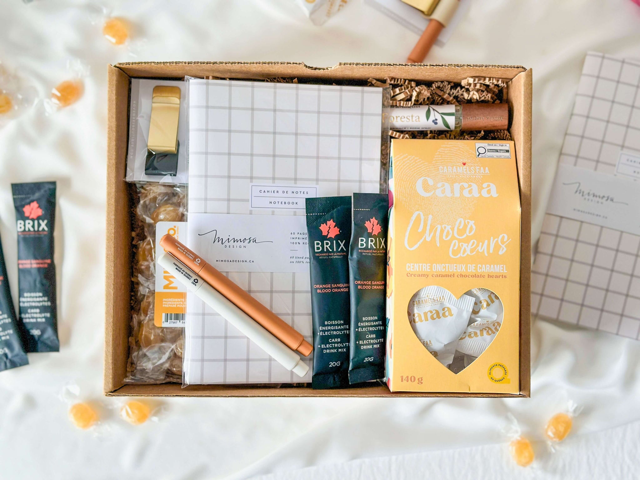 And since every good workday deserves sweet little breaks, we’ve tucked in a few comforting treats: chocolate-caramel hearts, honey candies… just the thing to stay motivated between Zoom calls!